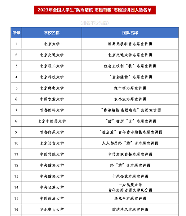 安徽医药卫校两支志愿者团队入选2023年全国大学生 “防治结核 志愿有我”志愿宣讲团