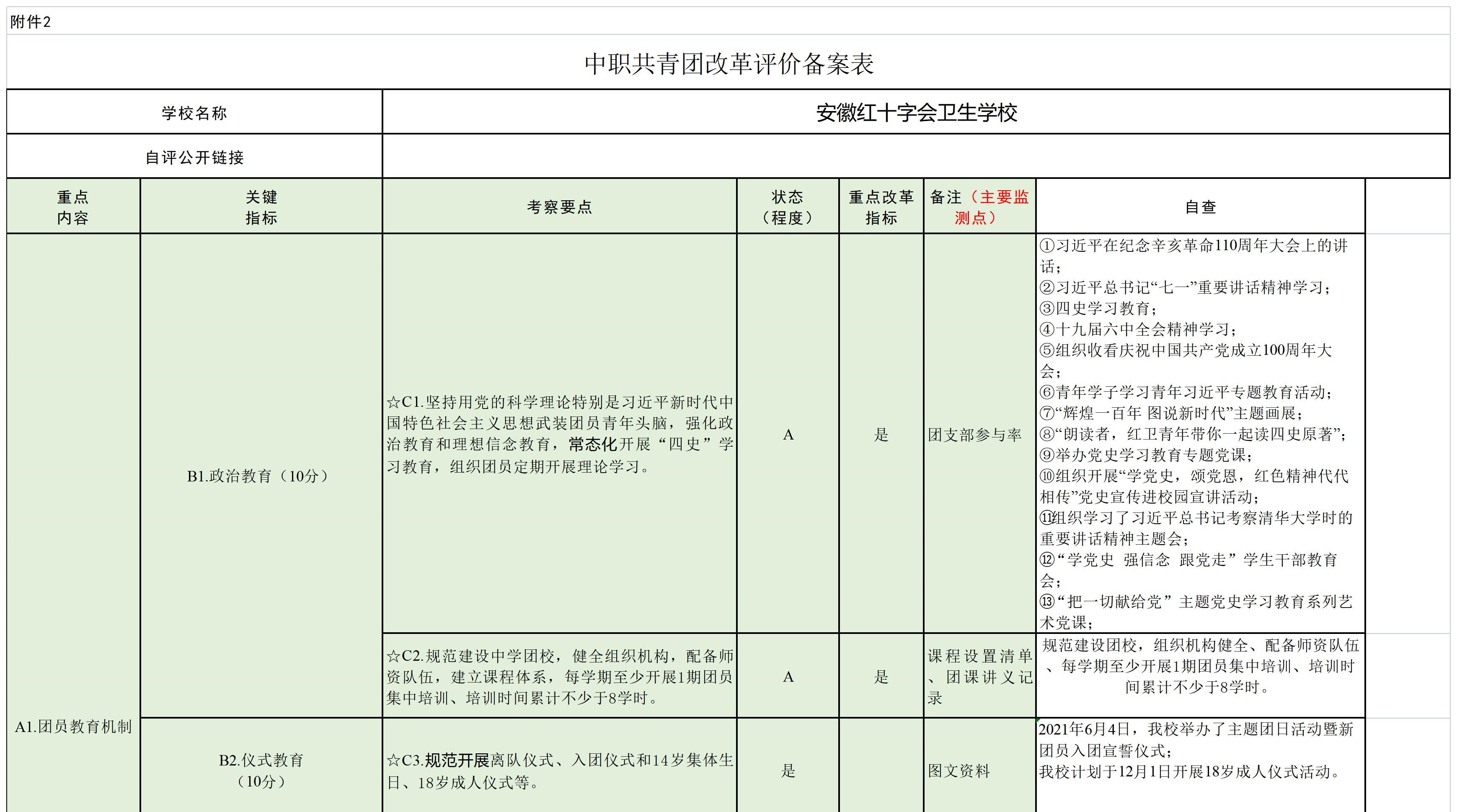 安徽红十字会卫生学校共青团改革评价备案表