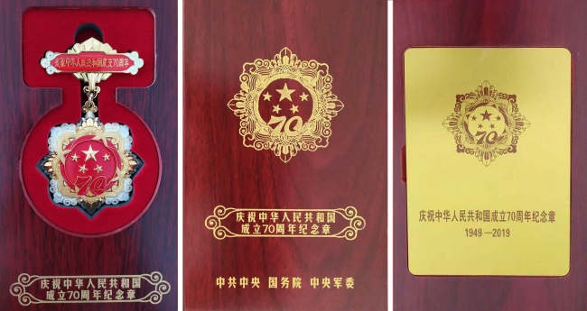 据悉,“庆祝中华人民共和国成立70周年”纪念章是为中华人民共和国成立前参加革命工作的健在的老战士老同志、中华人民共和国成立后获得国家级表彰奖励及以上荣誉并健在的人员、中华人民共和国成立后因参战荣立一等功以上奖励并健在的军队人员(含退役军人)、为中华人民共和国成立作出杰出贡献的国际友人中符合条件的人员而颁发。