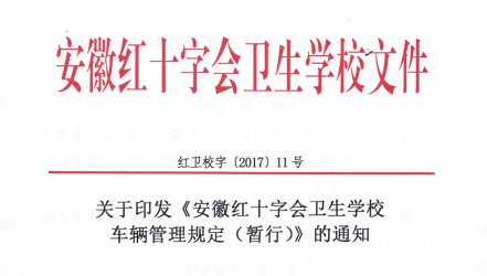 安徽红十字会卫生学校关于车辆管理规定的通知