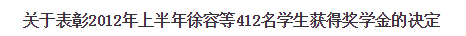 关于表彰2012年上半年徐容等412名学生获得奖学金的决定