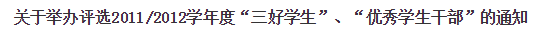 关于举办评选2011/2012学年度“三好学生”、“优秀学生干部”的通知