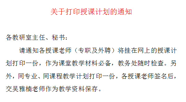 关于打印授课计划的通知.doc