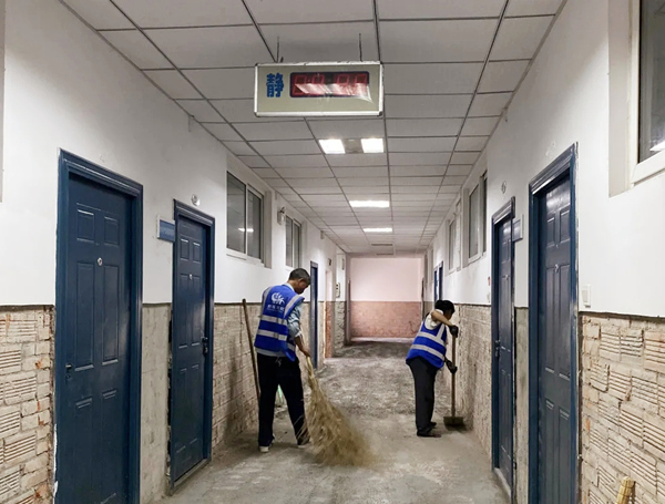 本次暑期校园维修改造工程计划投入500余万元,主要涉及对教学楼、行政楼进行内外墙重新粉刷翻新;对实训中心地板进行优化升级;对会议室、阶梯教室进行修缮、改造;对教学楼进行信息化升级,优化智慧校园建设等。尽管现在天气炎热,但学校为了赶在开学前能够顺利完成维修改造,给学生一个全新的学习环境,学校领导及总务主任、值班教师冒着酷暑加强施工计划监管,确保各施工项目按按质按量按期圆满完成。炎炎烈日,为了体现学校的人文关怀,学校还给一线施工人员发放了暑期解暑降温用品,让他们在灼热的夏日感受到一丝清凉。