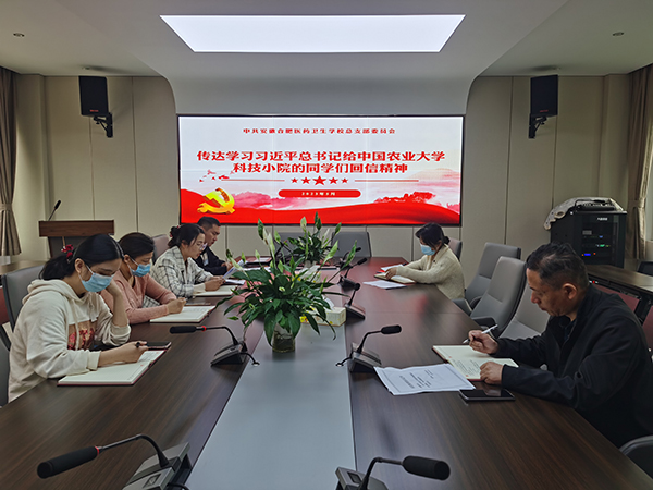 日前,安徽医药卫校党总支召开理论学习中心组会议,深入学习习近平总书记给中国农业大学科技小院的同学们回信精神。学校党总支班子成员、各党支部书记参加会议。