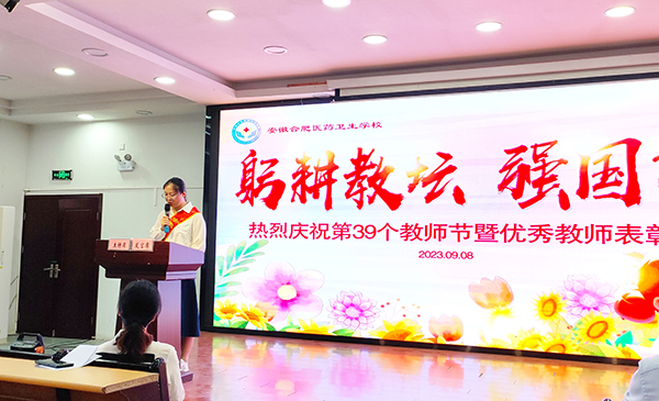 躬耕教坛,强国有我。金秋九月,累累的果实在枝头飘香,为深入学习贯彻习近平总书记关于教育的重要论述,以最高礼遇、最诚敬意、最深谢意,表彰先进典型,传递榜样力量,弘扬良好风尚,9月8日下午,安徽合肥医药卫生学校2023年教师节庆祝表彰大会在教学楼一楼多功能厅举行,校领导秦永元、汪玮、胡军健、徐晶晶、王道麟出席大会,全体教职工参加大会,庆祝表彰大会由教务处主任沙雯主持。