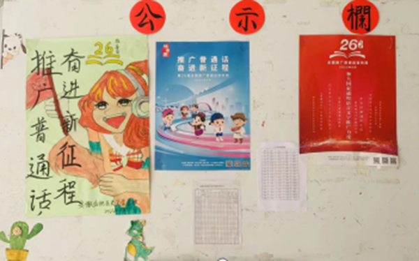 学校通过电子屏、宣传栏、校园广播等媒介载体进行推普宣传,在营造浓厚推普氛围的同时,让全校师生更好地体会到学习普通话的重要性,营造了推广普通话的良好氛围。
