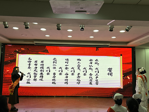 省赛指导教师代表尹忠芹老师带领全体参加省赛学生进行宣誓,他们表示一定端正备赛态度,勤学苦练,给自己上交一份满意答卷。