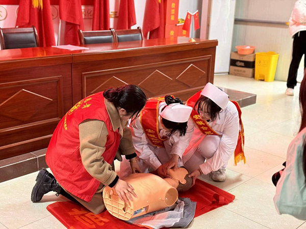 健康一队青年志愿者开展应急救护演示和教学活动,助力提升华光社区居民应急救护能力。同时,志愿者们为居民免费测量血压并对检查情况做好详细记录,针对检查结果提出了日常生活护理建议。
