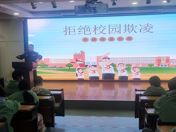 “开学第一课,安全第一讲”。为进一步加强对学生的法制教育,提高学生法制意识和自我保护能力,3月7日下午,肥东县撮镇派出所缪全武警官一行4人走进安徽合肥医药卫生学校,以“防电信诈骗、防校园欺凌”为主题开展法制宣讲活动,给老师和同学们带来一场生动的法制公开课。