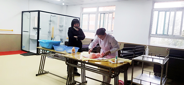 实习生选拔结束后,陈文瑶主任一行在校领导的陪同下,实地参观了学校省级护理示范实训基地的智慧康复实训室及智慧老年照护实训室。