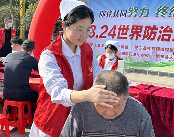 为深入学习宣传贯彻党的二十大精神,全面推进健康中国建设,在第29个“世界防治结核病日”即将来临之际,为进一步宣传肺结核防治知识,提高人民群众对防治结核病的意识和能力,3月22日上午,安徽合肥医药卫生学校联同肥东县卫健委、肥东县疾病控制中心、肥东县店埠镇中心卫生院,在肥东县和平文化广场举办以“你我共同努力终结结核流行”为主题的结核病防治宣传活动。