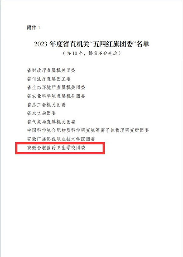 此次荣誉的获得,既是对学校共青团工作的肯定,也是对广大青年学生的激励和鼓舞。站在新起点,安徽医药卫校将继续围绕省直团工委的部署和学校中心工作,以坚定的政治信念、扎实的组织基础、优质的青年服务,持续发展学校共青团的新质生产力,助力学校高质量发展贡献青春力量。(文:吴晓杰)