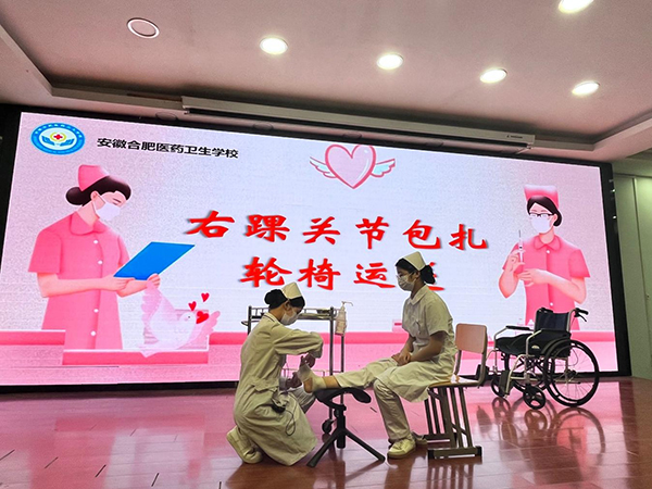 活动在欢快的歌舞交织中正式拉开帷幕。歌舞表演《你要跳舞吗》深情诠释了学生间难以言表的深厚情谊,舞蹈表演《上春山》演绎了春末夏初的勃勃生机与无尽活力,将卫校学子的青春朝气与活力展现的淋漓尽致。护士不仅需要具备扎实的专业知识,更要有良好的仪容仪表和专业的接待礼仪,《护士礼仪风采》展示护理专业学生的专业形象和优雅风采,紧接着进行了护理技能操作、心肺复苏术和右踝关节包扎(轮椅运送)等专业技能的展示,天使们标准而又娴熟的技术操作,得到了在场老师和同学们的一致好评。