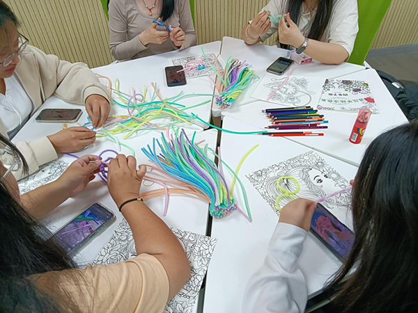为进一步加强学生心理健康教育,宣传心理健康知识,促进学生心理健康发展,5月31日下午,安徽合肥医药卫生学校在教学楼311教室开展心理健康主题教育“释放压力、缓解焦虑”DIY解压活动。活动旨在为同学们提供一个宣泄情绪的渠道,同时也通过扭扭棒、绘画涂色的方式帮助放松心情,感受心灵的平静和美好。