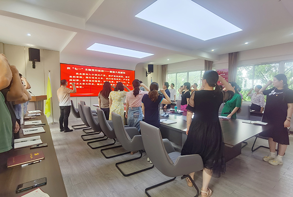 在学校行政楼三楼会议室,全体党员面对鲜红的党旗,高举右拳,集体重温入党誓词,追忆入党初心。“我宣誓:我志愿加入中国共产党,拥护党的纲领……”,当铿锵有力、掷地有声的誓言在会场响起,映照出安徽医药卫校共产党员昂扬向上的奋斗激情,再一次坚定了每一位共产党员入党时的信念和为共产主义教育事业奋斗终生的决心。大家纷纷表示,回顾入党时的那份庄严承诺和坚定决心,我们要始终感党恩、听党话、跟党走,发扬红色传统,努力践行誓言,为党的伟大事业奉献出毕生的力量。