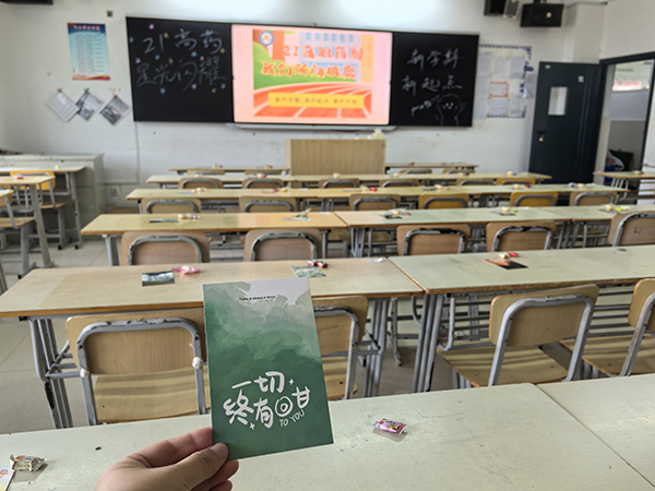 一张张干净的桌凳、一排排整齐的柜子、一个个精美的小礼物……还有班主任们提前设计和绘制的黑板报,也为孩子们的到来做好了充分的准备。为了让开学多一份惊喜和期待,有的班主任还在同学们的桌子上留了一份小礼物。或是可可爱爱的千纸鹤;或是元气满满的向日葵;或是甜甜蜜蜜的糖果……礼物虽小,却蕴含着老师的一份心意,让同学们一进教室就感受到满满的开学仪式感。
