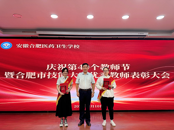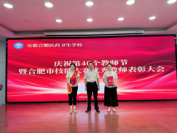 三尺讲台献芳华,四季耕耘育桃李。在第40个教师节到来之际,为大力弘扬教育家精神,营造全校尊师重教的浓厚氛围,激励学校广大教师和教育工作者落实立德树人根本任务,9月10日中午,安徽合肥医药卫生学校在教学楼多功能厅举行庆祝教师节暨市技能大赛优秀指导教师表彰大会,学校董事长秦永元、校长汪玮、党总支副书记徐晶晶、副校长王道麟出席大会,全体教职工参加大会。大会由常务副校长胡军健主持。