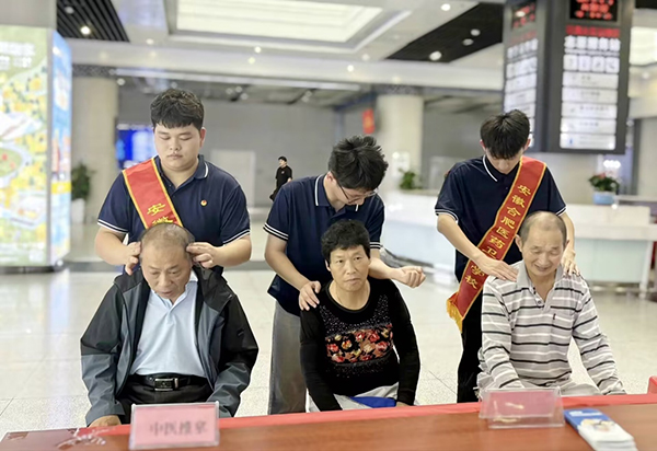 肺结核预防宣传小队通过发放宣传资料等向广大旅客宣讲防治知识,提高旅客对肺结核的认识;中医推拿小组用自己专业知识为活动现场的旅客进行推拿按摩,舒展筋骨;健康养生小组传播健康理念,引导老年人建立科学、健康的生活方式。