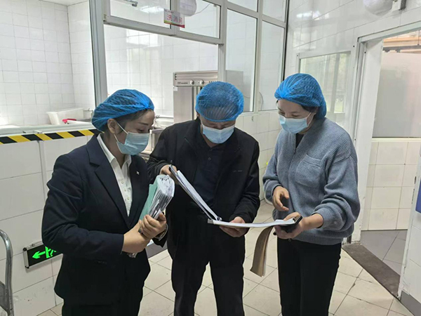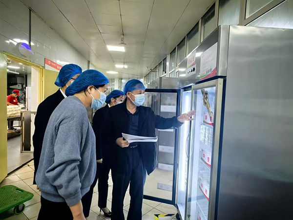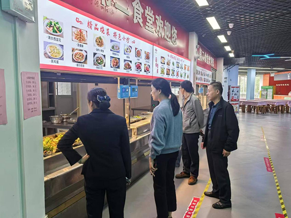 汪玮一行实地查看了食堂前厅和后厨,详细了解食品采购、储存、加工、留样等工作,并对食堂经营资质、食品经营许可证、从业人员健康管理、食品加工场所环境卫生、食品储存条件、采购索票索证、每日晨检和通风消毒以及各类台账记录、食品留样记录、设施设备等情况进行了现场督查。针对检查中发现的问题,要求立即整改。