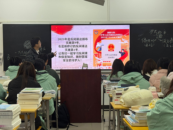 班会上,学生在班主任的引导下,集中学习了《反间谍法》,观看了《反间谍法》宣传教育视频。通过真实案例,进一步增强学生的国家安全防范意识、爱国意识和保密意识,筑牢师生的思想防线。在班会课中,班主任强调了维护信息安全的重要性,引导学生认识到间谍行为对国家的危害,学生对相关法律法规有了更加深入的认识,扩大了12339受理举报平台的知晓率。