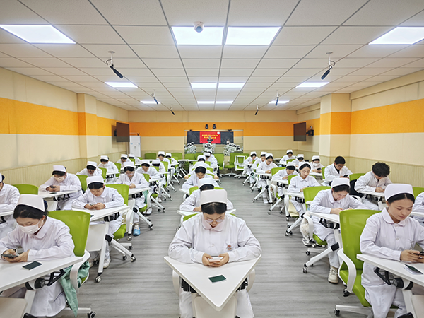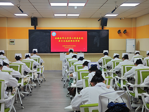 而安徽医科大学第二附属医院的实习生选拔方式不同于以往,本次采用线上答题的方式,同学们手持手机,他们有的眉头微皱,有的眼神坚定,考场里,安静得只能听见手机屏幕点击的轻微声响,那是同学们在知识的海洋中奋力划桨的声音,是他们为梦想拼搏的心跳声。