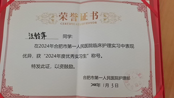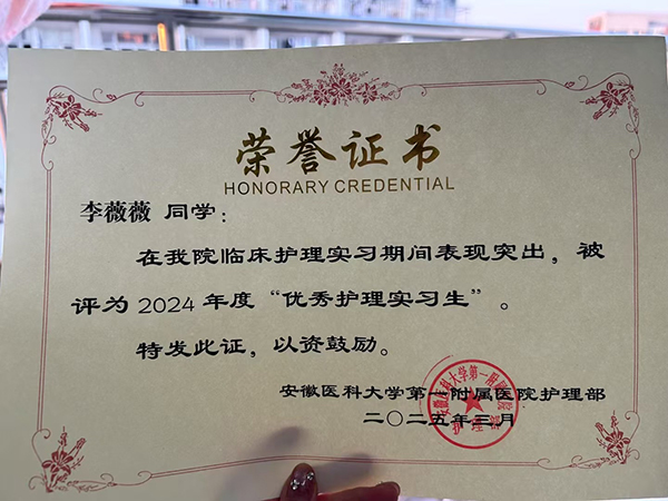 安徽合肥医药卫生学校始终秉持“知行合一”的教学理念,高度重视学生实践能力培养。本次实习中,共有25名实习生荣获“优秀实习生”称号,这既是对个人努力的充分肯定,更是对学校教学质量和人才培养模式的有力褒奖。希望受表彰的同学能以此为新的起点,在未来的护理岗位上继续精进技艺,书写更精彩的职业篇章。同时,也期待更多学子以他们为榜样,深耕专业知识,锤炼实践技能,努力成长为德技双馨的护理人才,用仁心仁术守护人民健康,在护佑生命的征程中绽放青春光彩。