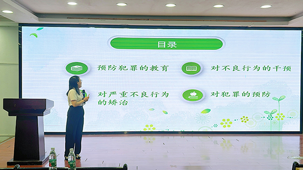 讲座伊始,范珣以深入浅出的方式,从法律的基本概念入手,向师生们解释了什么是法律?法律在我们生活中的作用以及未成年人保护法的核心内容。她强调,未成年人作为社会的未来和希望,更应从小树立法治观念,学会用法律武器保护自己。随后,重点解读了《未成年人保护法》和《预防未成年人犯罪法》的相关内容。她详细介绍了未成年人保护法中的六大保护体系,并强调了监护人、学校、社会各界在未成年人保护中的责任和义务。同时,针对预防未成年人犯罪,范珣从不良行为的干预、严重不良行为的矫治以及重新犯罪的预防等方面进行了深入剖析,通过实际案例让师生们深刻认识到不良行为和违法犯罪行为的危害性。在讲座过程中,范珣还特别强调了未成年人的自我保护意识。她提醒师生们要了解常见犯罪类型及其后果,增强自我保护意识。同时,还鼓励师生们合理使用网络,警惕网络不良信息,树立正确的价值观和法治观念。