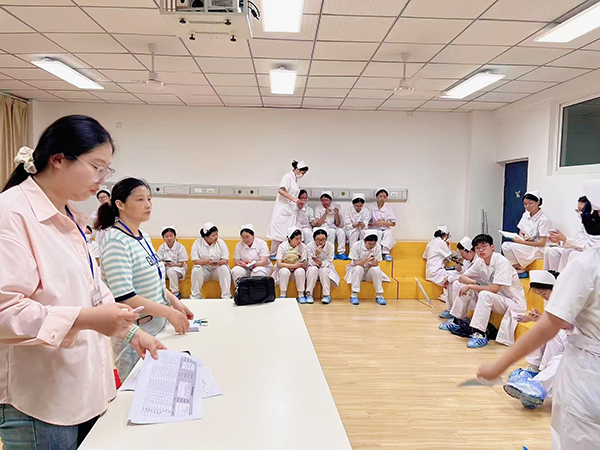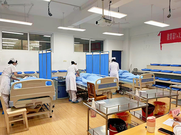 考核当日,考生分批次完成理论与实操测试。教学楼阶梯教室内,考生凝神作答,将课堂所学转化为答卷上的专业积淀;实操考场外,候考学子专注演练操作流程,在志愿者引导下有序入场。在紧张而有序的氛围中,卫校学子以严谨的态度和娴熟的技能,诠释了对老年照护职业的敬畏与热忱。