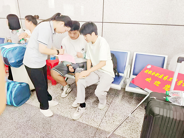清晨,学校的接站车队已整装待发。高铁南站、汽车站的出站口处,举着“欢迎新同学”标牌的老师们和志愿者们早已就位,红色的引导旗在晨风中轻轻摇曳,像一簇簇跳动的火焰,温暖着每一位远道而来的学子与家长的心。“同学这边走,行李我来帮你拿!” 志愿者们热情的招呼声此起彼伏,接过沉重的行囊,也接过了家庭的期盼与嘱托。