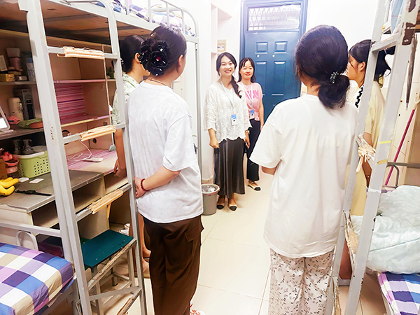 报到日晚上,校领导带队分组走进新生宿舍区开展慰问工作,确保新生宿舍走访无遗漏、全覆盖。每支队伍都由校领导牵头,相关职能部门负责人、班主任代表共同参与,形成了上下联动的关怀网络。