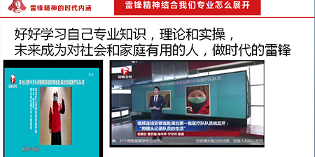 3月5日,是一年一度的学习雷锋活动日,在2020年这个不同寻常的年份我们迎来了第57个学雷锋纪念日。由于新冠肺炎疫情的蔓延,使全国都陷入紧张的疫情防控中,很多挺身而出的“逆行者”不顾个人安危,让雷锋精神闪耀在战“疫”一线,让每一个宅在家里的人感到温暖和安全。为进一步弘扬在抗击疫情中体现出的无私奉献、攻坚克难、众志成城的新时代雷锋精神,在学生处统一组织下,各班级陆续召开了“学习雷锋好榜样”线上主题班会。