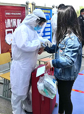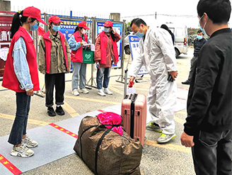 4月26日早上,学校疫情防控工作领导小组全体成员及各班主任、校医、后勤工作人员全部到位,为返校学生提供最贴心的服务。学生返校时都佩戴口罩,保持1米间距,手持家长和本人签字的承诺书排队入校,经入学检查工作人员查验“安康码”、核对身份、手部消毒、行李消毒、测量体温等流程后进入校园。在入校检测点,我们的老师为返校学生指引规定的行走线路、帮助学生搬运行李等。