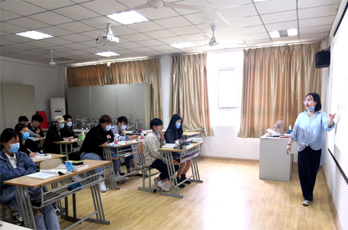 在课堂上,学生自觉地戴口罩专心听讲,所谓“课堂是学生智慧与快乐的发源地,也是老师教学的生命力之所在”。