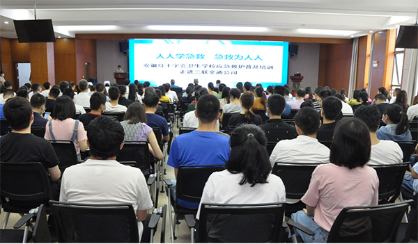 为更好履行职业院校的培训职责,进一步推动产教融合深入开展,在“安全生产月”之际,6月24日,红会卫校应急救护培训队走进安徽三联交通公司开展应急救护知识培训,旨在提高企业员工安全意识,增强应急救护能力。三联交通公司总经理王江波、副总经理罗文其、方向勇、李志广及三联交通公司在肥全体员工、三联京三公司和三联机器人公司部分员工参加培训,红会卫校校长洪梅代表培训队进行发言。