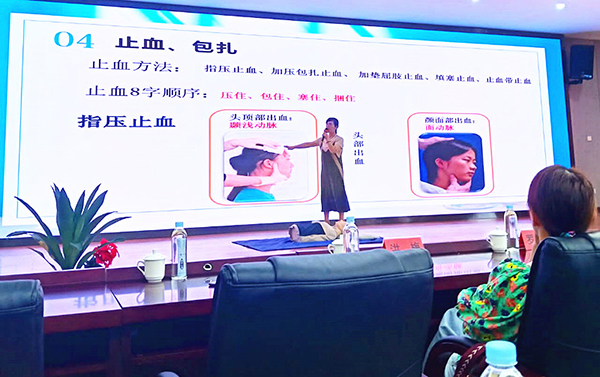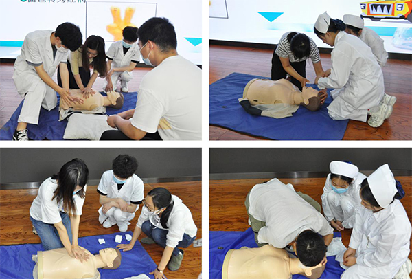 本次培训内容包括应急救护的定义,日常软组织损伤,烫伤的应急处理,重点围绕止血包扎和心肺复苏深入讲解,每讲一个知识点,主讲老师都会进行现场示范操作,方便参训人员掌握实操技巧。理论课程培训结束后,培训老师还利用模拟人进行现场心肺复苏实操,实际操作培训,参训学员们踊跃参与,亲身演示体验针对心肺复苏术的全程现场实操。
