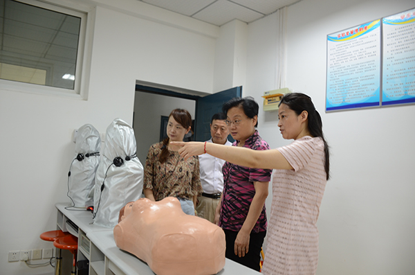 孙齐云一行重点查看了学校基础机能实训室,形态实训室,基础护理示教室,模拟病房、专科护理、急救护理等实训室,并对各实训室的设施设备进行察看。随后,孙齐云一行深入学生宿舍,看望同学们,并检查了宿舍公共设施设备,走访了学校超市,食堂等公共场所。