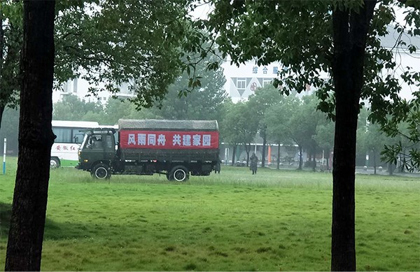 7月24日中午,我校负责人接到有关部门电话通知,为确保大坝安全,保护周围群众,学校将作为应急防汛部队的临时指挥部。接到电话后,校党总支书记方劲松、校长洪梅第一时间进行紧急部署,全力协调解决抗洪部队入驻后的生活后勤保障问题。学校后勤部门人员及时安排人员打扫卫生,布置场地,整理宿舍,竭尽全力为抗洪官兵提供力所能及的服务。