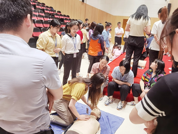 最后,参加培训的每位老师在培训老师的指导下认真动手演练CPR操作,并就日常生活中遇到的交通事故、火灾、溺水等事件的应急救护步骤进行了咨询。