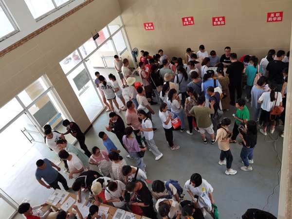 新生一走进校园,接待处、咨询点、绿色通道指引等各种与入学报到有关的标识一目了然。校园内,各专业报到点人潮涌动,欢声弥漫,热闹非凡,新生报到工作紧张有序地进行。校领导不时深入报到现场,了解新生报到情况,与新生及家长亲切交谈,嘘寒问暖。各职能部门工作人员、各驻点老师均在接待点第一时间为新生提供优质服务,帮助学生办理入学登记注册手续,为学生和家长解答相关疑问。