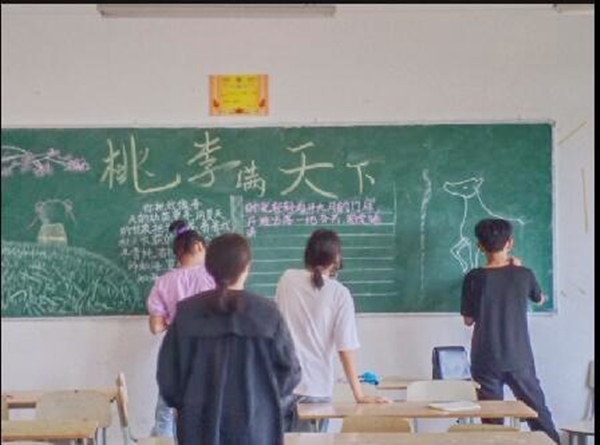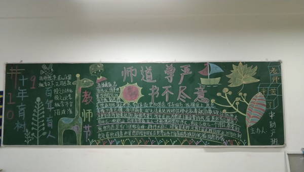 绘画主题黑板报。教师节前夕,各2020级新生班级自发主办了一期庆祝教师节的主题黑板报,书写尊师格言,讲述教师爱生的故事,表达学生尊师的经历和感受,进一步烘托教师节的庆祝氛围。