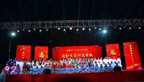 在中秋国庆佳节和安徽三联集团30华诞即将来临之际,为营造喜庆祥和的节日氛围,9月25日晚6时30分,红会卫校“逐梦•筑梦”2020年迎新生暨国庆中秋师生联欢晚会在学校篮球场隆重举行。肥东县教体局职成办主任韦存和、安徽省红十字会事业发展部部长张本该、安徽三联集团执行总裁余皖生、安徽三联交通应用技术股份有限公司总经理王江波、安徽三联机器人科技有限公司总经理梅珑和安徽三联学院副校长姜发根、蔡文芬以及合肥三联教育培训学校等兄弟单位有关领导携同红会卫校全体师生共同观看了晚会。