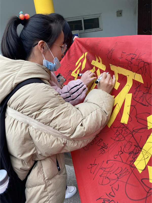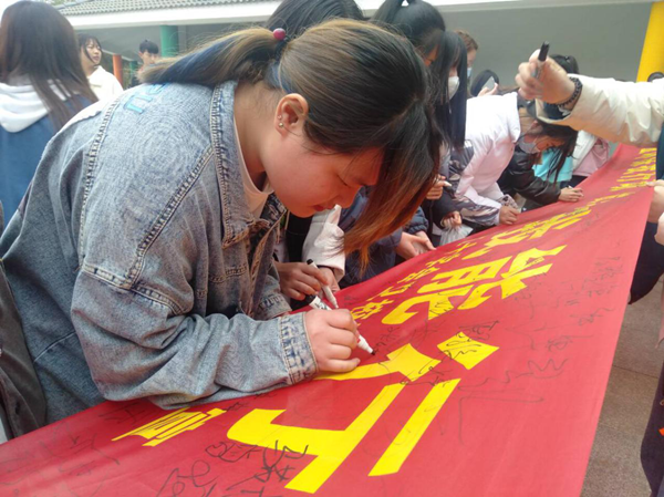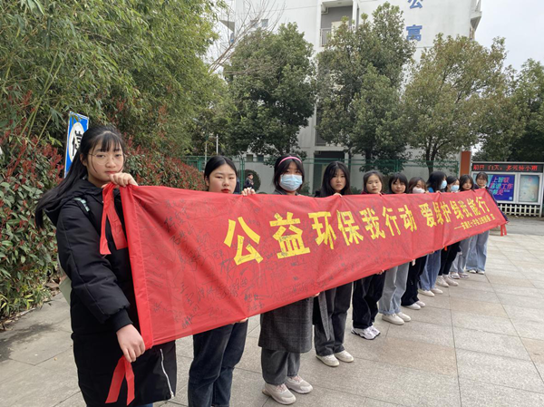当天中午,校团委在食堂外广场举办了“公益环保我行动,爱绿护绿我能行”主题倡议活动,同学们纷纷在宣传横幅上郑重签下了自己的名字。通过签名,增加了红卫学子绿色环保、节约节能的意识,愿他们在以后的生活中能够自觉树立环保意识,为绿色健康发展贡献自己的力量。