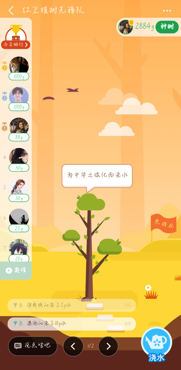 此外,红会卫校团委积极通过支付宝蚂蚁森林平台,建立“红卫植树先锋队”,倡导全校师生共同通过“体育运动、线上支付、网络购票”等绿色环保行为减少碳的排放量,并通过环保行为获得的“绿色能量”,在手机里种植一棵棵虚拟大树。