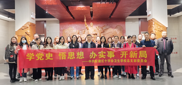 方劲松书记表示,党史学习教育主题实践活动,是深入学习贯彻落实习近平总书记在党史学习教育动员大会上的重要讲话精神,扎实开展好党史学习教育,让学校广大党员同志在思想政治上受洗礼,共产党人为人民谋幸福为民族谋复兴的初心使命在战争炮火的淬炼下愈发坚定。是传承好红色基因,发扬红色传统,深切体会红色政权来之不易,以革命到底的精神坚定答好新时代的红会卫校卷。是继承和发扬革命先烈坚持立党为公、执政为民的革命情怀,加快推进幸福红会卫校建设,主动关注师生诉求,积极帮助师生解决热点难点问题,不断提升红会卫校师生的幸福感和获得感。是继承和发扬革命先烈谦虚谨慎、不骄不躁、艰苦奋斗的优良作风,始终保持奋发有为的进取精神,常学常新红色传统教育,推动安徽红十字事业工作高质量发展。