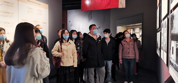 全校党员同志们依次参观了“革命赓续 安徽建党”“红色沃土 红军摇篮”“华中砥柱 铁军战歌”和“江淮鏖兵 革命胜利”等内容。大家认真聆听讲解,仔细观看文献,“革命赓续 安徽建党”展示了安徽新民主主义革命的开始和安徽地方党组织的创建;“红色沃土 红军摇篮”展示了土地革命战争时期的安徽革命斗争,重点突出了皖西地区的红军与红色政权的诞生。“华中砥柱 铁军战歌”展示了抗日战争时期的安徽革命斗争,重点了突出党中央领导下的新四军在安徽的抗日斗争;“江淮鏖兵 革命胜利”展示了解放战争时期的安徽革命斗争,重点突出了安徽人民为淮海战役与渡江战役作出的巨大贡献。