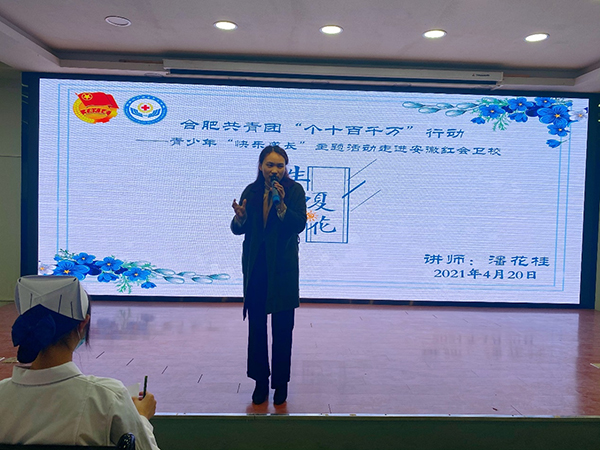 此次活动由肥西实验高级中学心理辅导室负责人、国家二级心理咨询师、肥西县心理名师工作室成员潘花桂主讲,红会卫校280名师生参加这次主题活动。