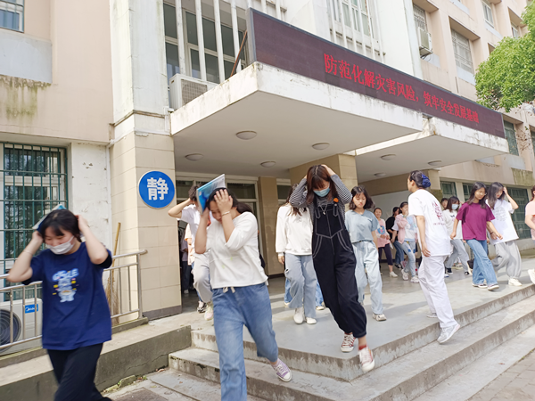 演练过程中,全体师生按照学校的统一指令,在警报拉响后按要求进行避险。随着警报声响,各班主任立即指挥本班学生开始离开教室,每两名学生并排走,按照各楼梯口指挥人员的指引有序快速撤离。学生们双手抱头,弯腰快速前进,有摔倒的师生立即扶起。大家紧张而不慌乱、人多而不拥挤,井然有序的迅速从各条安全疏散通道撤离,实施就近避险,并以较快的速度疏散到指定的安全区域。