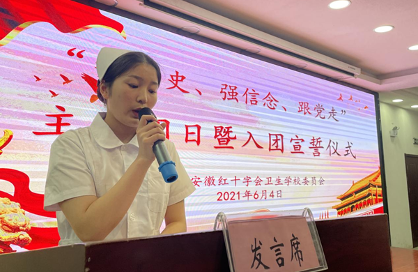 新团员张曼同学代表全体新团员表示,要继续努力学习,勤奋好学,不耻下问,为日后成为一名优秀的医务工作者打下坚实的基础,用实际行动践行自己的入团誓言。