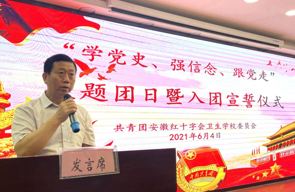 团旗鲜艳,团歌嘹亮。6月4日中午,红会卫校团委在多功能报告厅举办“学党史、强信念、跟党走”主题团日活动暨2021年新团员入团宣誓仪式。校党总支书记方劲松、副校长胡军健、校长助理徐晶晶出席仪式,仪式由校团委书记吴晓杰主持。